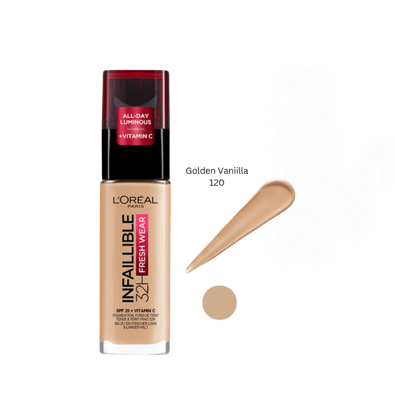 Infallible 32H Freshwear Foundation, with vitamin C and SPF25. A transfer-proof and water-proof foundation with full coverage so you get more from your makeup.