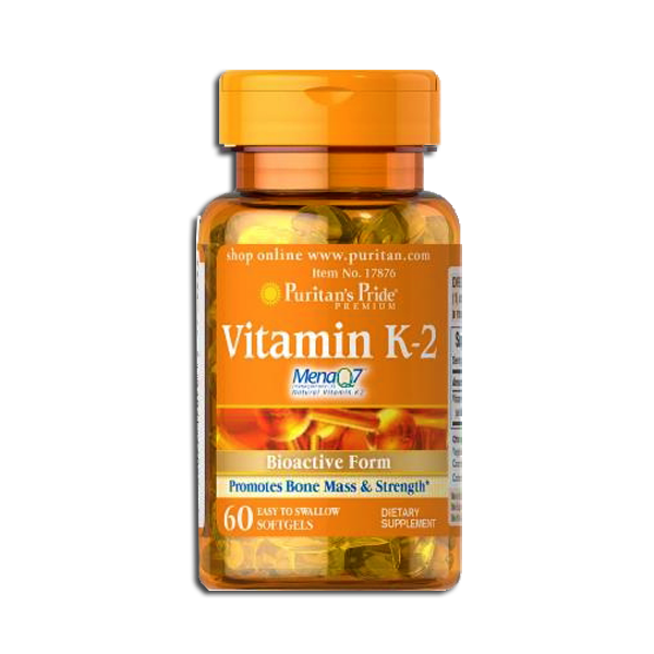 Enhance Bone Health with Puritan’s Pride Vitamin K2 Softgels Vegetarian, NonGMODescription Looking to elevate your bone health regimen Puritan’s Pride Vitamin K2 Softgels offer a scientifically formulated solution packed with the highest quality ingredients. These vegetarian, nonGMO, and glutenfree softgels are the perfect companion to Calcium and Vitamin D, promoting optimal bone health.Highest Quality Vitamins and Supplements Puritan’s Pride prioritizes quality, ensuring you receive the best possible ingredients in every K2 softgel.Scientifically Formulated Backed by science, this targeted formula delivers the optimal amount of Vitamin K2 for maximum benefit.Unlock Synergy with Calcium and Vitamin D Puritan’s Pride K2 Softgels work beautifully alongside Calcium and Vitamin D, creating a powerful trifecta for bone health.Dietary Friendly Crafted with a vegetarian, nonGMO, glutenfree, and soyfree formula, these softgels cater to a wide range of dietary needs.