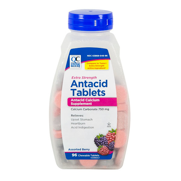 QC Calcium Antacid Extra Strength Tablets Assorted provide fast and effective relief from heartburn, acid indigestion, and upset stomach. These tablets contain calcium carbonate and magnesium hydroxide to quickly neutralize excess stomach acid. Enjoy the convenient tablet form and delicious assorted flavors!