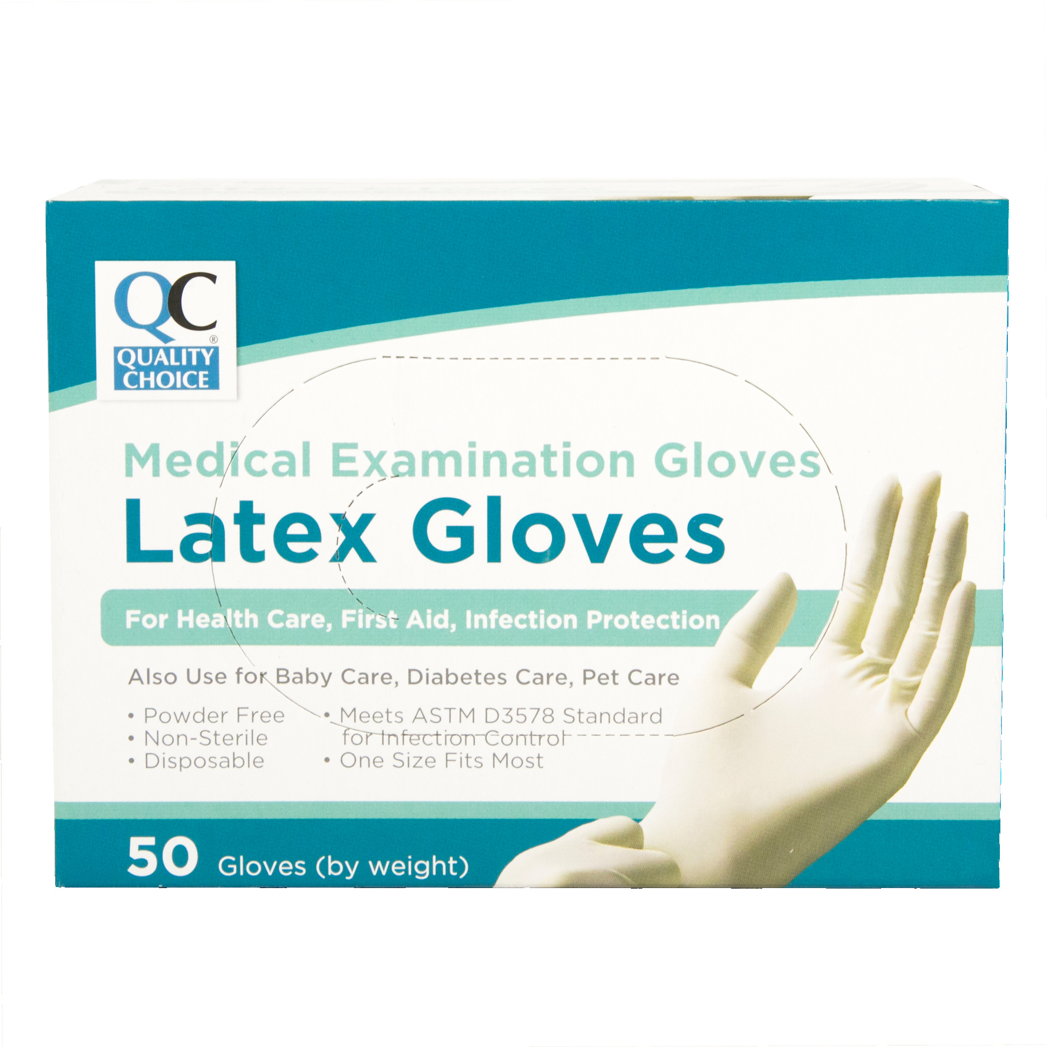 QUALITY CHOICE LATEX EXAMINATION GLOVES OSFM IS SINGLE USE AND CAN BE USED ON EITHER HAND FOR BABY CARE, FIRST AID, HEALTH CARE , DIABETIC CARE AND PET CARE.