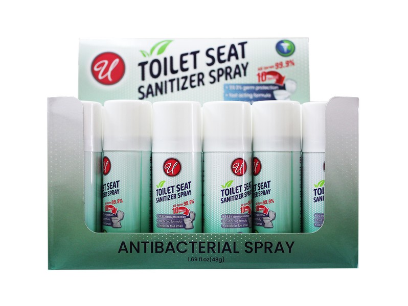 Spray on toilet seat and surfaces to sanitize. Wipe off with a clean tissue